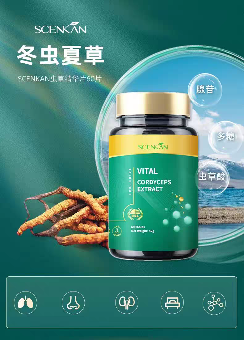 scenkan冬虫夏草精华片虫草菌丝体非胶囊强免疫力咳补肺肾