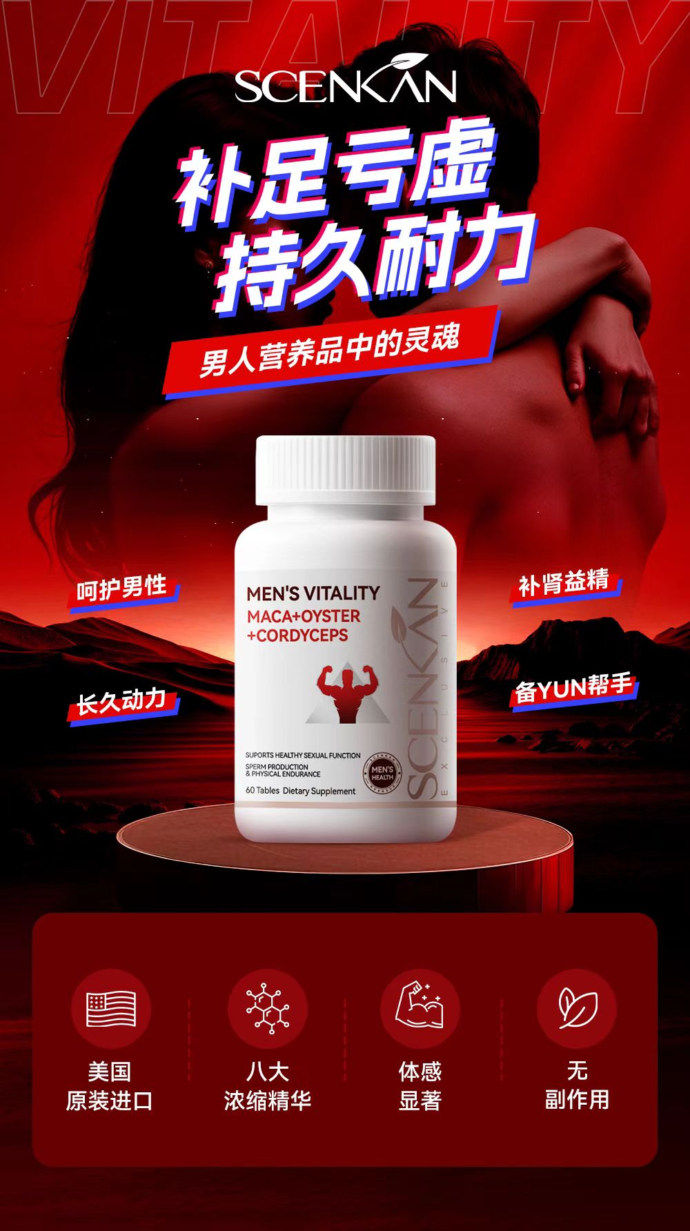 Scenkan男性精力片高含量牡蛎玛咖胶囊 男性促睾锌镁活力精力片硒